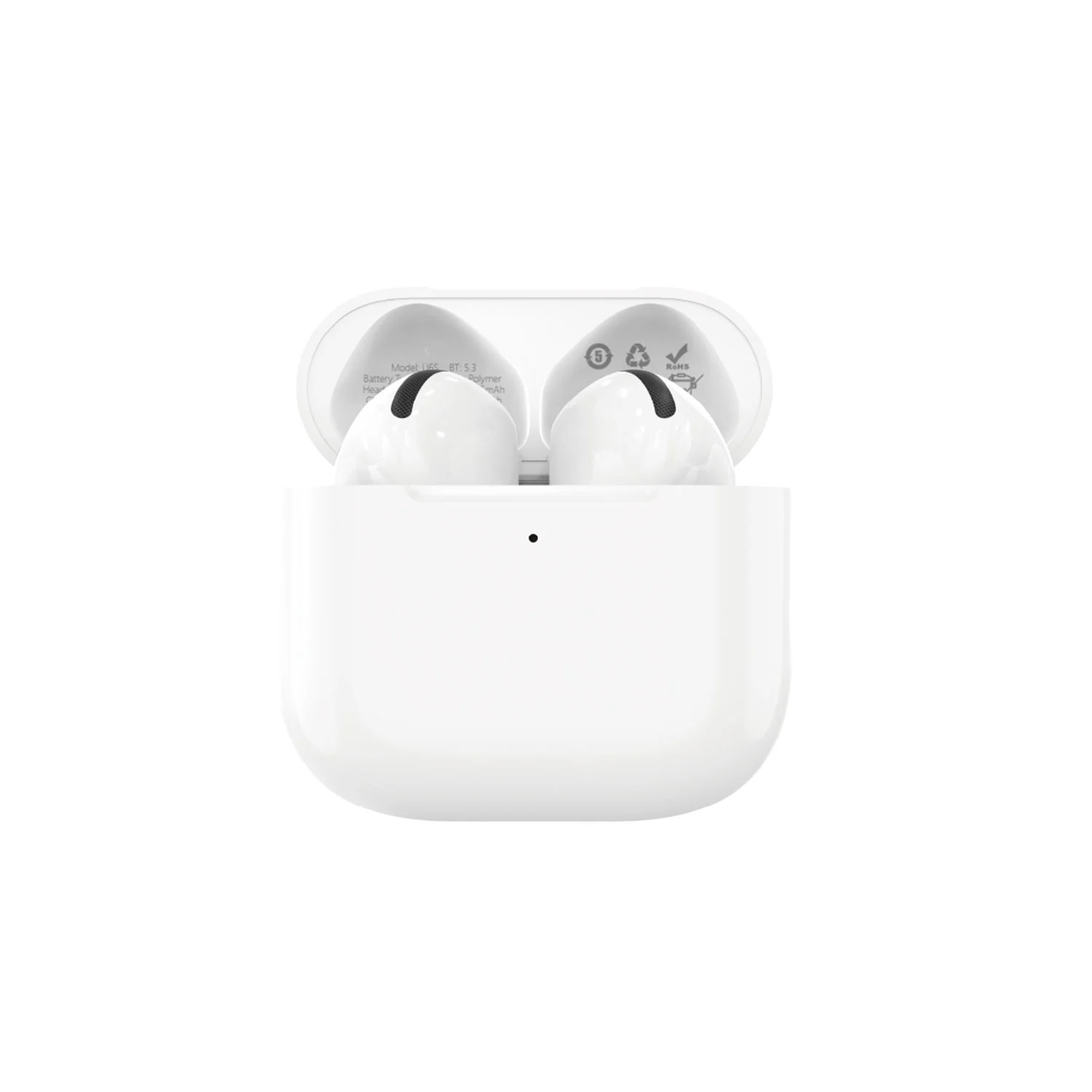 Bt solution:Jieli 6983D2Bt version:5.3Bt transmission distance:10MStandby time:50 hTalk time:4 - 5 hours Music time:80% 4 - 5 hours Charging time:1 hBattery capacity of headset:25mAhCharging case capacity:300mAh