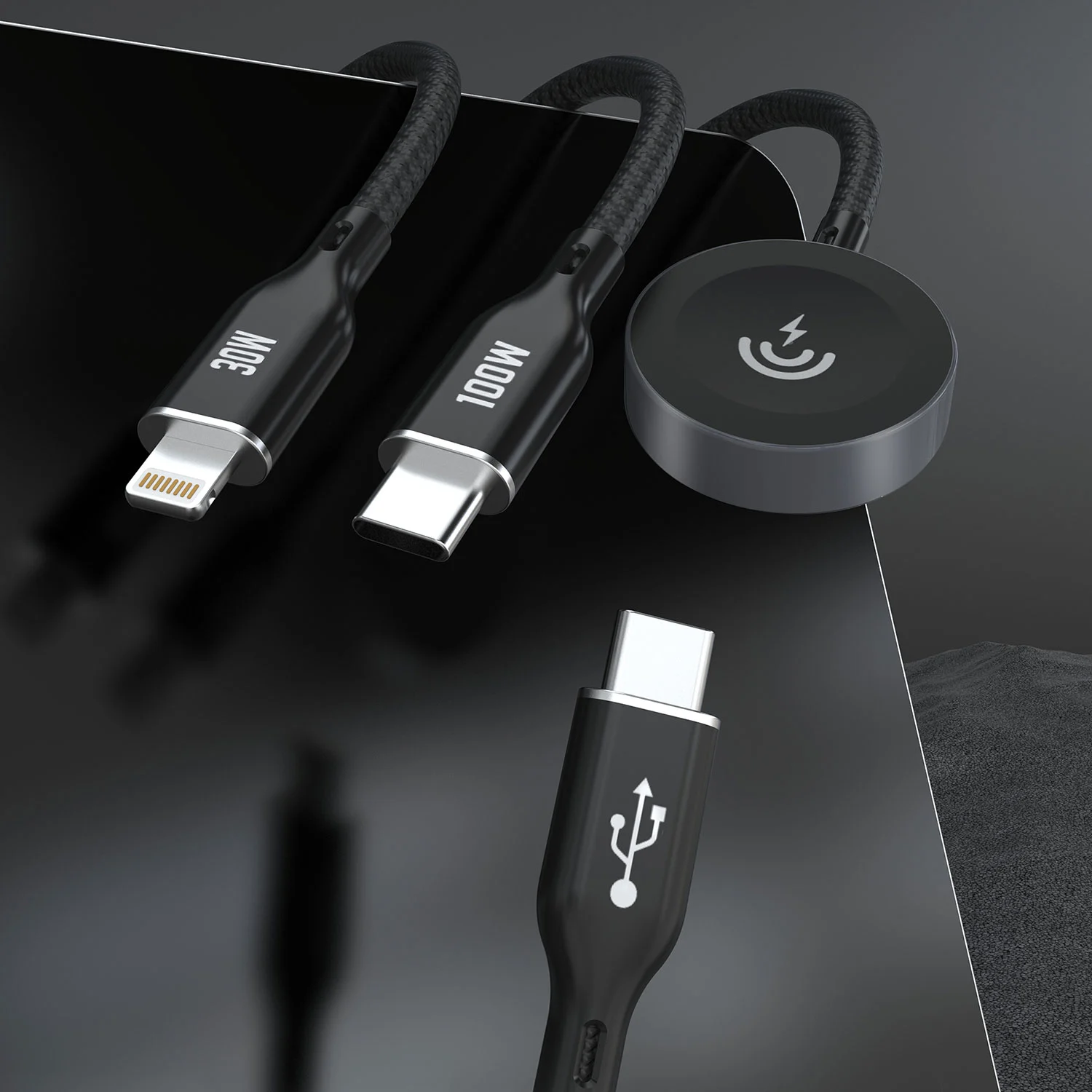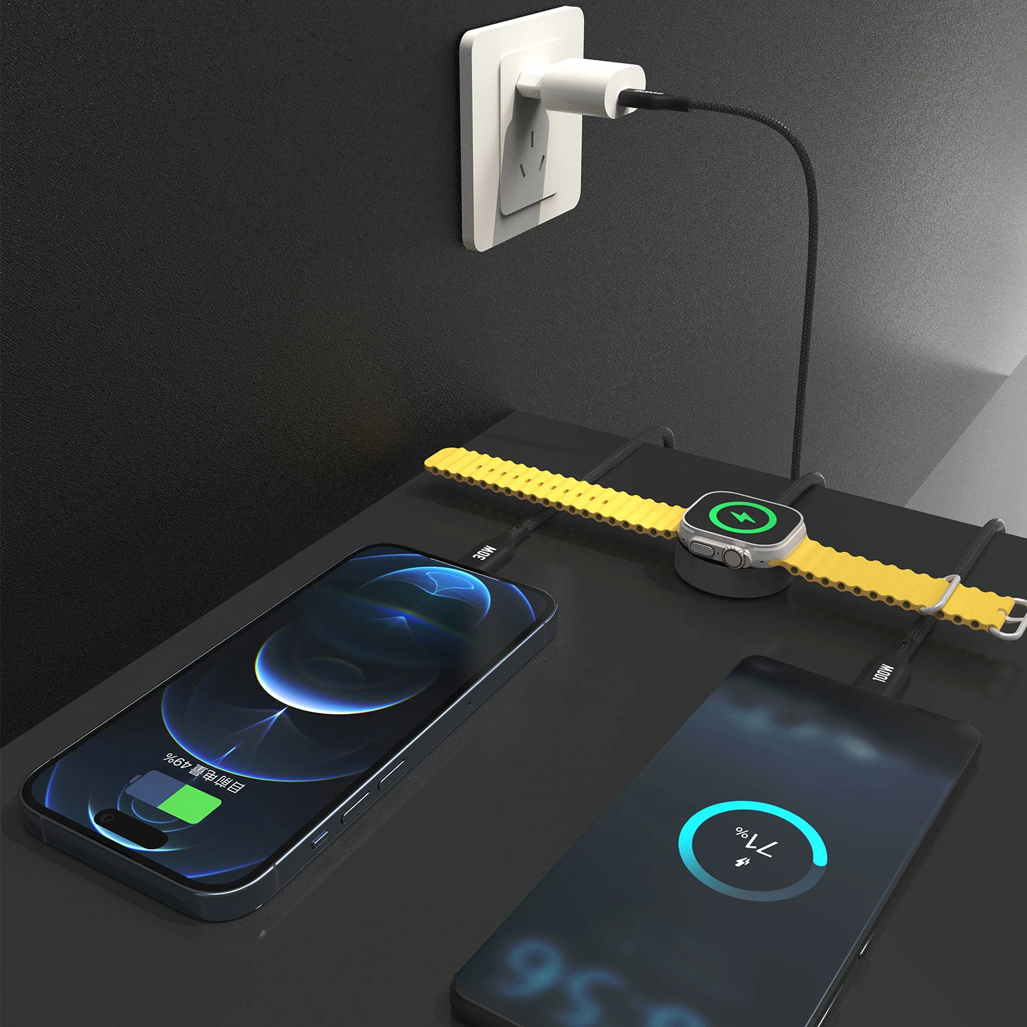 PD100W 3 in 1 aphone/iwatch cahrging cable( C to C+L+Watch Wireless Charger)